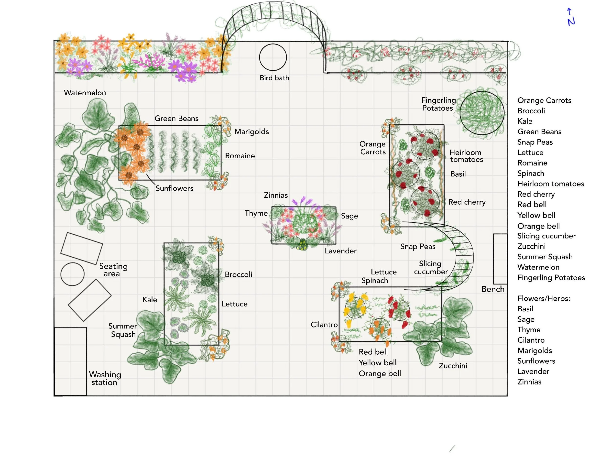 A custom garden layout map so you know where everything fits (see examples below!)